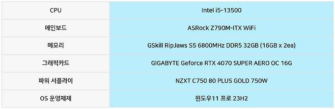 모니터 성능 테스트에 사용된 PC 스펙은 아래를 참고해 주세요.