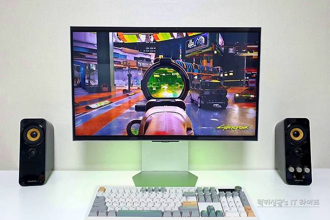 저의 최애 PC 게임 중에 하나인 '사이버펑크 2077'는 고사양 액션 RPG 게임으로 유명한데요. 4K 해상도에서 게임을 즐기려면 DLSS 지원되는 NVIDIA RTX 4070 이상 또는 RTX 5070 시리즈 그래픽 카드가 필요해요. 또 한 가지 쉴 새 없이 움직이는 마우스 반응에 즉각적인 화면 전환이 가능한 고주사율 게이밍 모니터까지 준비돼 있다면 그야말로 최고의 게이밍 환경 구축이죠~!