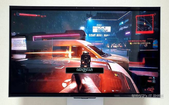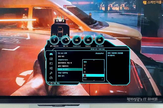 오디세이 3D 모니터 G90XF에서 제공하는 '조준점 표시하기' 기능을 사이버펑크 2077 게임할 때 이용해 봤는데요. 여느 게이밍 모니터와 또 다른 차별점이 있더라고요.