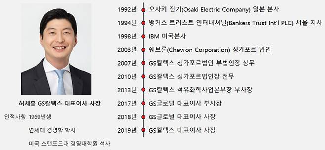 허 사장은 2007년 GS칼텍스에 입사하며 그룹에서 커리어를 시작했다. 당시 싱가포르 법인의 부법인장을 맡으며 임원으로서 경영 수업을 시작했다. 그는 싱가포르에서 원유와 LNG(액화천연가스) 수입, 석유제품 수출 등의 업무를 담당했고 신시장 개척의 역할을 수행했다. 이후 여수공장 공장장, 윤활유사업 본부장을 맡으며 석유화학 부문에서 전문성을 강화했다.