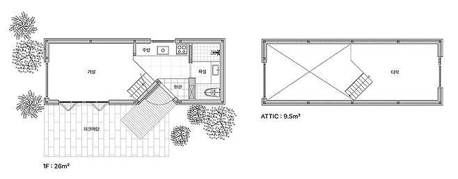 플레이서스의 ‘엑스스몰’은 공장에서 제작해 건축주가 원하는 장소로 운반, 설치되는 이동식 모듈러 주택이다. 현장 시공 시 발생할 수 있는 여러 단점을 보완 및 개선하여 양질의 시공 결과물을 기대할 수 있다는 장점이 있다. 6평, 8평의 기본 모듈에서 길이와 높이 확장이 가능하고 라이프스타일에 따라 공간 레이아웃을 재구성할 수 있다. 만약 15평형으로 제작을 원한다면, 8평과 7평 1채씩의 조합이 가능하다. 욕실과 주방 등의 배치도 원하는대로 가능하고 욕실 확장이나 다락 층고 조절, 폴딩도어나 평상의 추가 등이 가능하다. 기호에 따라서는 자재 변경도 할 수 있다. 인테리어 콘셉트도 모던, 레트로 등 선택지가 많다. 이렇게 거의 모든 부분을 건축주가 원하는 대로 커스터마이징할 수 있는 까닭에 바로 구매계약이 체결되지 않고, 예약을 통해 현장 방문 조사 및 분석, 디자인 협의를 선행하게 된다.