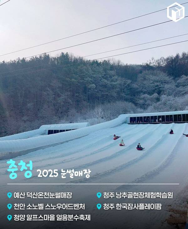 수도권에서 접근성이 좋은 충청권 눈썰매장은 총 5곳입니다. 예산 덕산온천, 천안 소노벨, 청양 알프스마을, 청주 낭추골현장체험학습원, 청주 한국잠사플레이팜 5곳에서 눈썰매장을 운영하고 있습니다.