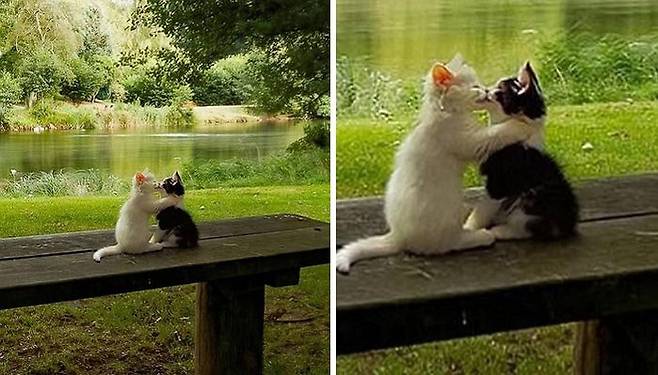 공원에서 산책을 하다가 뜻밖에 고양이들 애정행각에