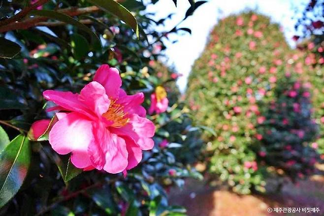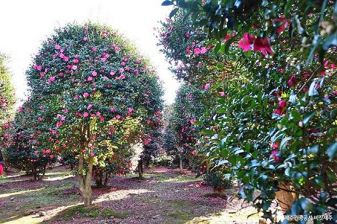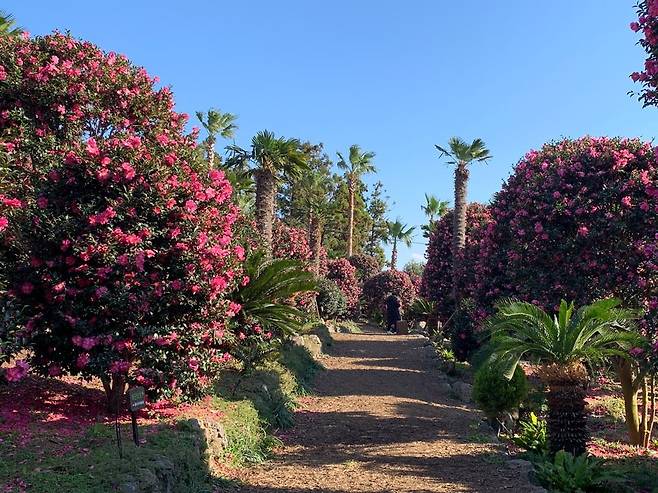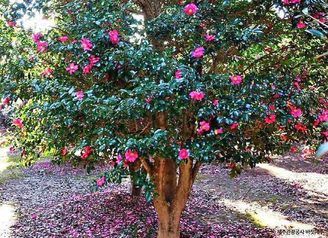 눈 대신 꽃잎이 깔린 듯한 모습은 이곳에서만 볼 수 있는 겨울 풍경이다. 이 풍경을 사진으로 담기 위해 일부러 겨울 제주를 찾는 이들도 적지 않다.
