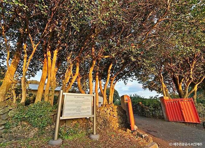 키가 크고 잎이 빽빽한 동백나무들이 줄지어 선 풍경은 웅장하면서도 묘하게 고요하다. 사람의 손에서 시작됐지만, 지금은 제주의 자연 풍경으로 완전히 스며든 모습이다.