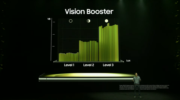또한 주변 조명 상황에 따라 픽셀 단위로 디스플레이 밝기를 자동 조정하는 비전 부스터(Vision booster) 기능도 단순히 On/Off가 아닌 3단계로 색상과 색 대비를 조절해 시인성을 더욱 높이고 디스플레이를 효율적으로 사용할 수 있게 했다.