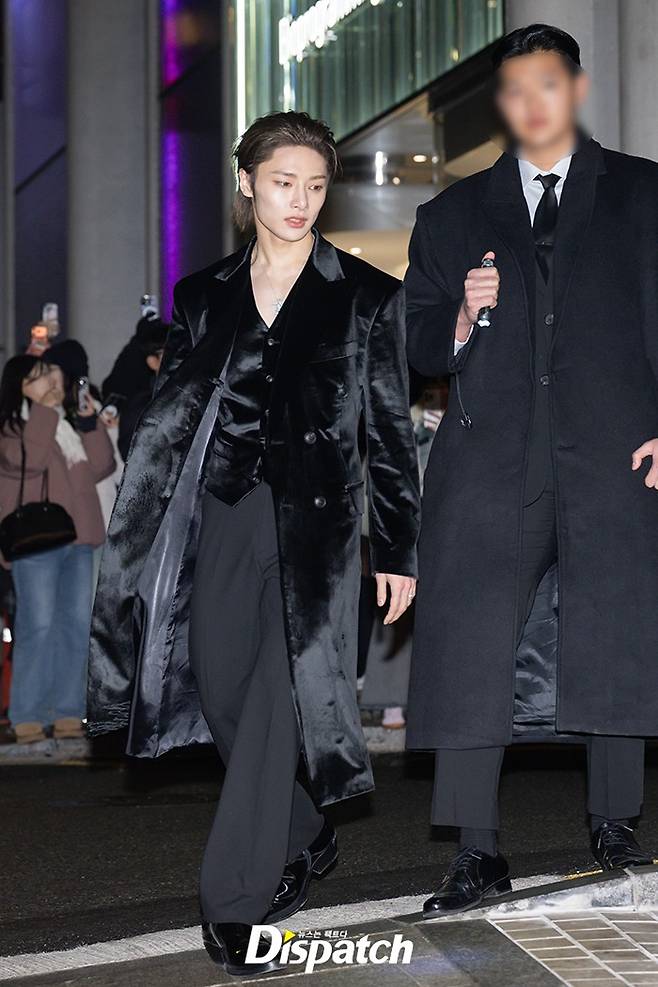 아이엔은 블랙 벨벳 수트로 멋을 냈다. 잘생긴 비주얼이 시선을 사로잡았다.