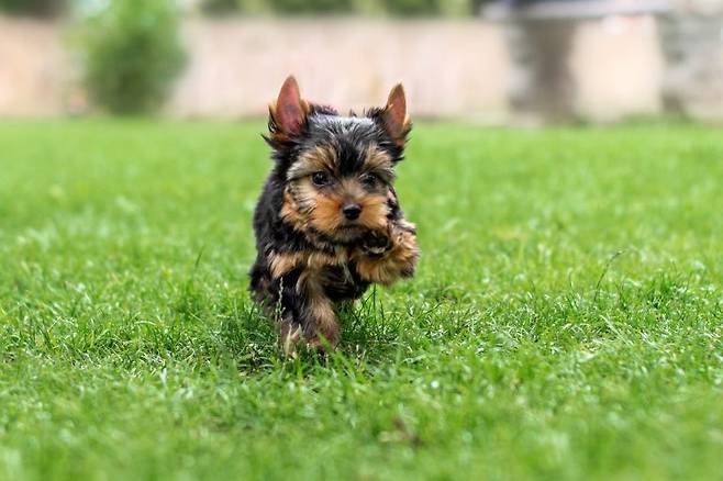 요크셔 테리어 역시 2~3kg 정도의 아담한 크기의 귀여운 외모로 많은 사랑을 받고 있는 견종이에요. 윤기나는 부드러운 털이 매력적이랍니다.