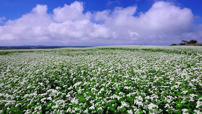 가을이라는 계절이 제주도에 다가오면 마치 눈이 내린 것처럼 또는 팝콘이 터진 것처럼 하얗고 작은 꽃들이 밭을 가득 메우는데, 그것은 바로 메밀꽃의 향연이다.