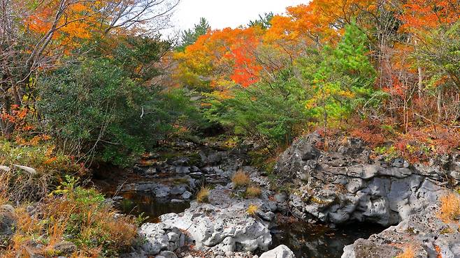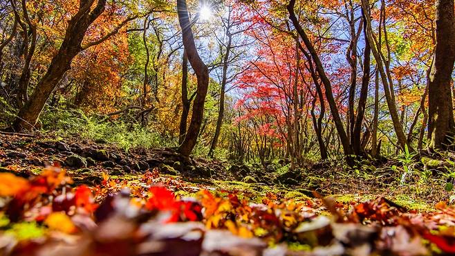 그 중에서도 한라산 둘레길 제1구간에 해당하는 '천아숲길'은 특히 단풍의 아름다움이 빛을 발한다.