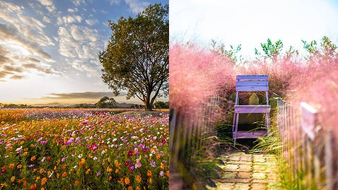 가을 꽃 하면 빼놓을 수 없는게 바로 '코스모스'다. 제주시 한림읍에 위치한 '서부농업기술센터'는 코스모스와 맨드라미가 아름다운 경치를 만들어내는 곳이다.