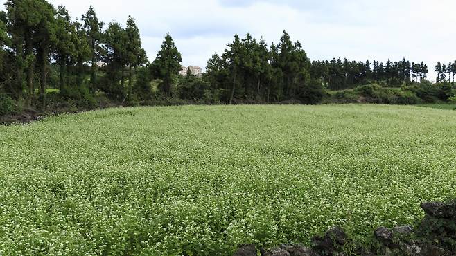 제주시 조천읍의 '와흘메밀체험마을'을 걸으면, 바람에 뒤척이는 메밀꽃이 마치 파도가 일렁이는 것처럼 느껴진다.