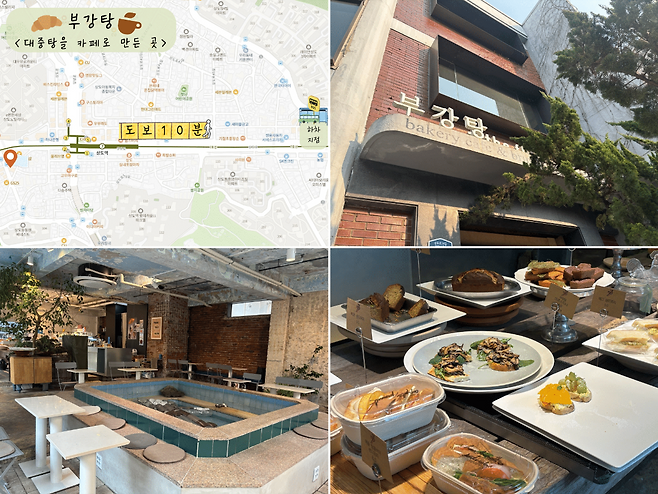 5511번 버스를 타고 ‘상도1동주민센터.상도3차래미안’ 정류장에서 내려 도보 10분 거리에 있는 ‘부강탕’은 과거 대중목욕탕이 현대식 카페로 탈바꿈한 사례다. 이곳은 코로나19로 인해 손님들의 발길이 끊기며 문을 닫았지만, 2022년 내부 리모델링 이후 1층은 베이커리 카페, 2층은 브런치 카페로 다시 태어났다.