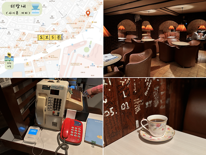1983년에 다방으로 문을 열어 지금까지 자리를 지키고 있는 카페도 중앙대 인근에서 만날 수 있다. ‘중앙대정문’ 정류장에서 도보로 약 5분 거리인 이곳은 요즘 보기 드문 ‘사이폰 커피’와 1990년대 대학가에서 인기 있던 디저트 ‘파르페’를 그대로 판매하고 있다. 계단을 따라 매장에 들어서면 낙서로 가득 찬 벽면과 레트로 인테리어가 과거로의 시간 여행을 가능케 한다.