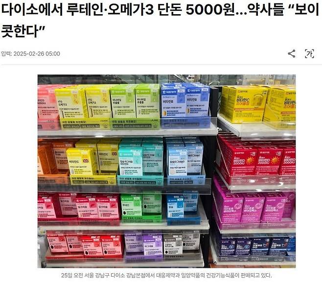 다이소가 지난 24일부터 건강기능식품(건기식) 판매를 시작하자 약국가의 반발이 거세다.