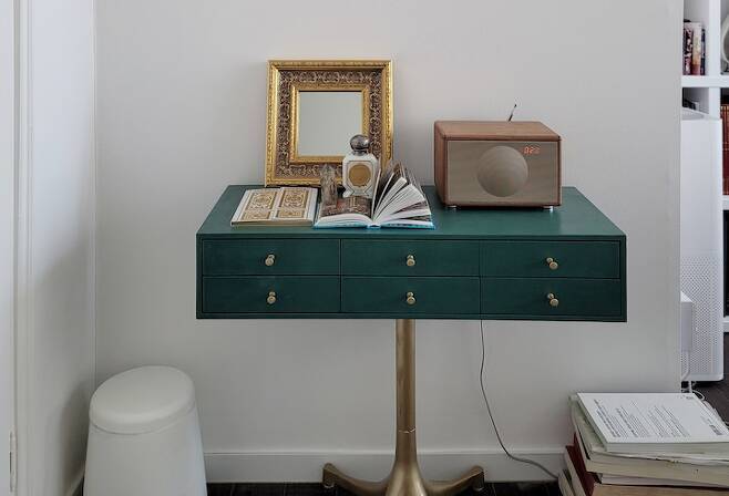 서재 한쪽에는 이렇게 코지한 공간도 있습니다. 당근마켓에서 구입한 콘솔인데 딥 그린 컬러와 골드의 조화가 신선해서 업어오게 되었어요. 그 후 저도 모르게 골드 소품들을 이곳에 자꾸 올려두게 되더라고요.