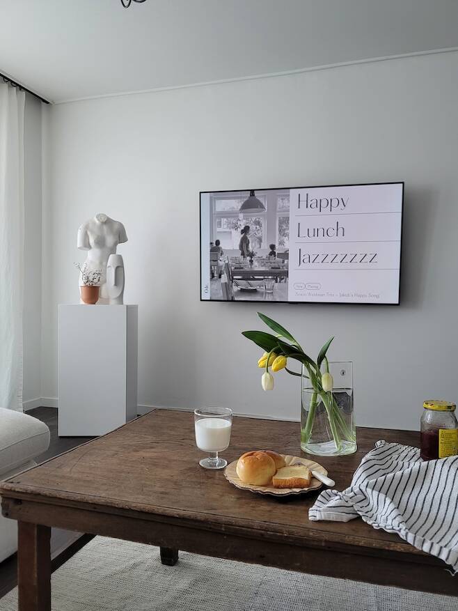일 년이 다 되어가는 현재의 모습입니다. 조금 더 손때도 묻고 주인을 닮아가는 중입니다. 손으로 빚은 것 같은 오브제 작품들이 공간에 감성을 더해주고 갤러리 느낌도 주기 때문에 적절히 배치하면 좋습니다. 꼭 고가의 제품들이 아니더라도 나의 취향이 담긴 오브제나 물건들이요! 토르소 작품을 보고 집이 갤러리 같다는 이야기를 많이 듣는데 알고 보면 당근마켓에서 5천 원 주고 데려온 아이입니다.