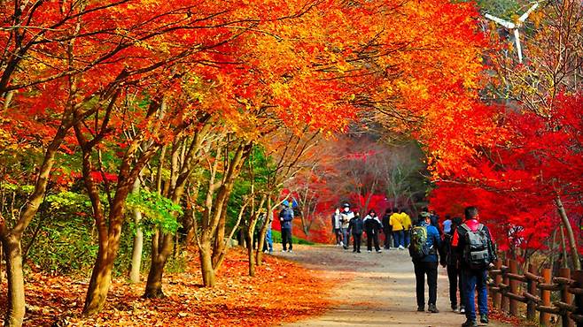 전국에서 가장 먼저 지정된 군립공원이자, 한 해의 마지막 가을을 담는 명소로 사랑받는 곳이죠.