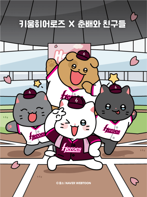 이번 협업은 '춘배'의 유쾌한 매력을 야구와 결합해 새로운 즐거움을 선사하고자 기획됐다. 특히 키움 유니폼을 입고 응원 도구를 든 춘배와 친구들의 모습을 담아낸 일러스트로 다양한 협업 상품을 선보인다.