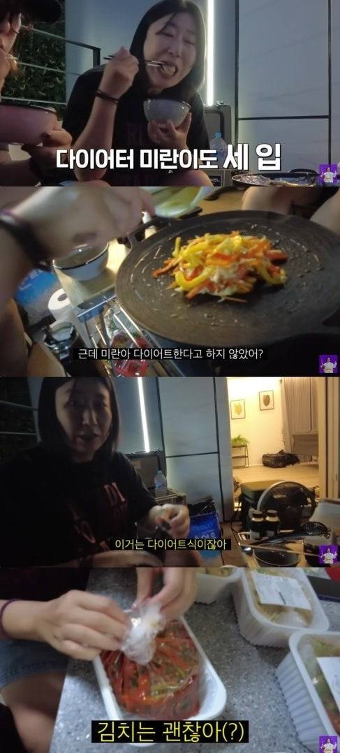 숙소로 돌아와서는 김숙 언니가 만든 세비체에 푹 빠져 쉬지 않고 먹는 모습에 김숙 언니가 “미란아 다이어트한다고 하지 않았어?”라고 묻자, “이거는 다이어트식이다”라며 웃음을 자아내기도 했어요. 😂 가져온 김치를 짜게 먹으면 안 된다는 말에는 “단 거”라고 본인만의 다이어트 소신을 강조하는 모습도 진짜 웃겼답니다. 🤣