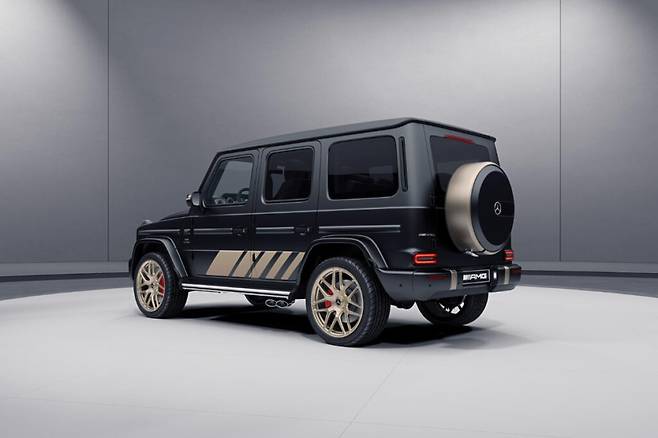 외관에는 무광 검정의 마누팍투어 컬러를 기본으로 적용하고, 측면 도어 하단에는 골드 색상의 AMG 그랜드 에디션 필름을 추가하여 시각적 대비를 더욱 강조했다.