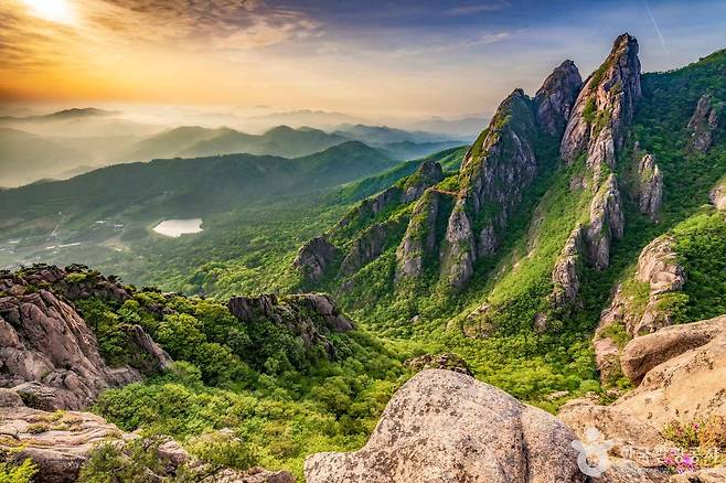 천황봉(810.7m)을 중심으로 펼쳐지는 산세는 마치 수석 전시장을 연상시킬 만큼 기암괴석이 압도적인 풍경을 자아냅니다.