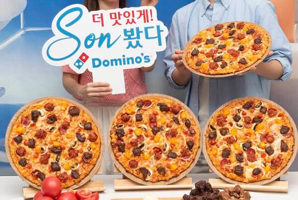 도미노피자는 신제품 ‘K-Rib & 치즈피자’를 출시했다. 이 제품은 한국식 스테이크에 데미그라스 소스를 더한 피자다. 위에는 큐브 치즈를 올려 풍미를 더했다. 도미노피자는 큐브 치즈가 손흥민이 두 손으로 카메라 모양을 만드는 세리머니를 형상화한 것이라고 설명하고 있다. 도미노피자의 광고 모델인 손흥민은 피자 박스의 일러스트로 만날 수 있다. 도미노피자의 K-Rib & 치즈피자의 가격은 라지 사이즈 기준 33,900원이다.