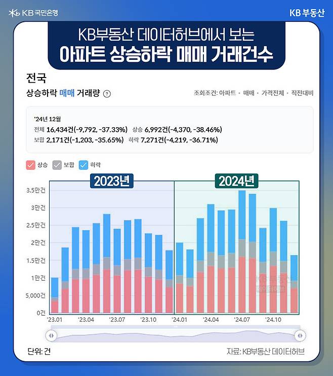 하락 거래가 상승 거래보다 더 많아진 때는 올 11월부터인데요. 12월 현재, 상승 거래 6,992건, 하락거래 7,271건으로 하락 거래가 279건 더 많습니다.