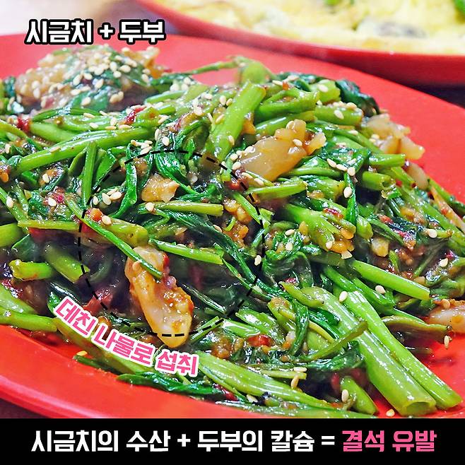그러나 시금치와 두부를 함께 섭취하는 것은 정말 위험할 수 있어요. 시금치에는 수산성분(옥살산)이 많이 함유되어 있어요. 요 시금치 속 수산성분이 두부의 칼슘 성분과 만나면 ‘수산 칼슘’이 형성되는데, 이것이 굳어지면 ‘결석’을 유발해요!