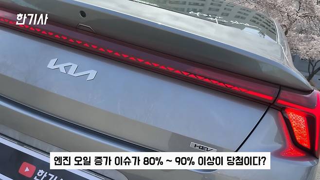 결론은 1.6 터보 하이브리드 모델 같은 경우는 엔진오일 증가 이슈가 80~90% 이상 당첨이라는 거죠. 이 차뿐 아니고 쏘렌토, 스포티지, 투싼 다 당첨이 되는 겁니다.