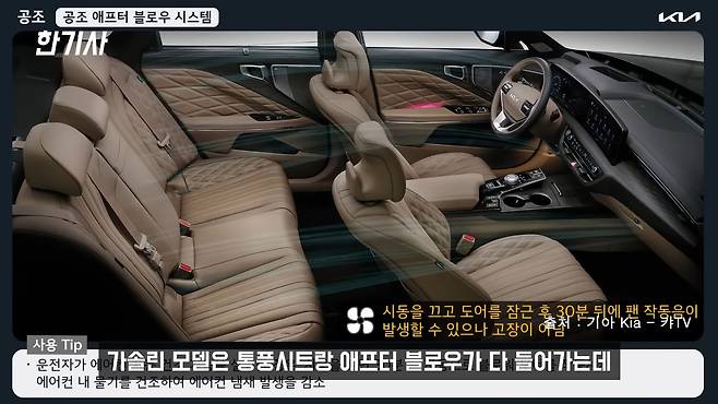 그리고 또 하나가 더 있는데 애프터 블로우랑 2열에 통풍 시트가 안 들어가요. 가솔린 모델은 통풍 시트랑 애프터 블로우가 다 들어가거든요. 물론 배터리 때문에 못 들어가는 거는 이해하는데, 애프터 블로우까지 못 넣을 건가 싶어서 저는 조금 아쉽더라고요