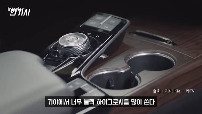또 연결되는 내용으로 블랙 하이그로시가 있는데, 너무 힘들어요. 스크래치가 잘 나는 부위에 다 들어가 있어요. 저는 애프터 마켓에서 우드 느낌의 소재를 그냥 사서 붙이는 걸로 해결을 했는데, 기아에서는 블랙 하이그로시를 너무 많이 써요.