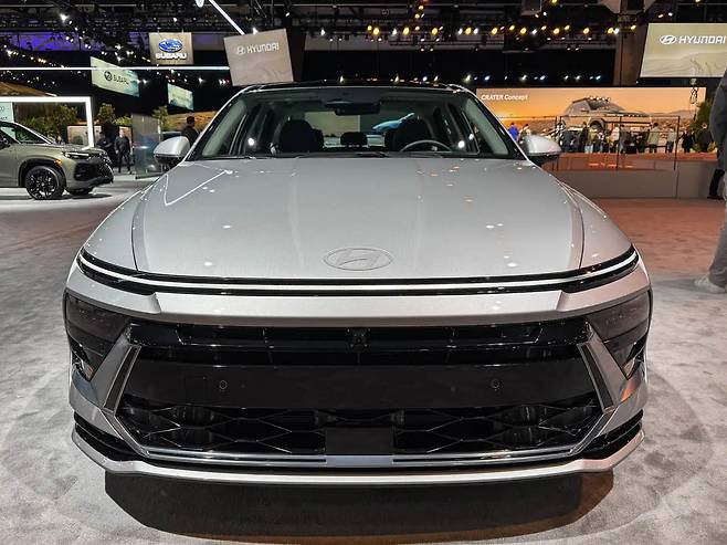 2026년형 쏘나타 하이브리드의 외관은 2024년 공개된 모델과 시각적으로 구별하기 어려울 정도로 동일한 디자인을 유지하고 있다. 전면부에는 수평적 레이아웃이 적용되어 '심리스 호라이즌 램프'와 넓게 배치된 히든 헤드라이트, 대형 그릴, 큰 에어 인테이크가 통합적으로 구성되어 있다.