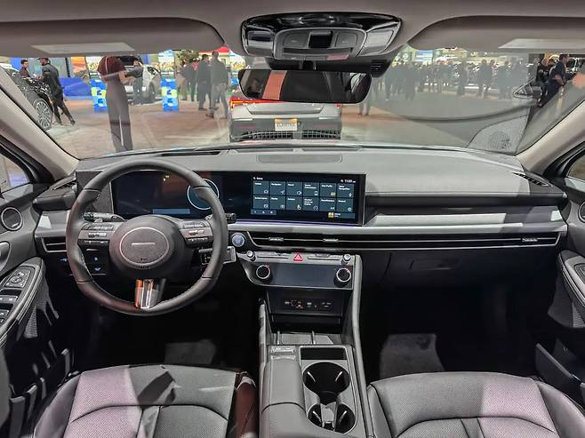 2026년형 쏘나타 하이브리드는 키 180cm 승객에게 충분한 전석 공간을 제공하며, 양호한 레그룸과 수용 가능한 헤드룸, 적절한 허벅지 아래 지지력을 갖추고 있다.