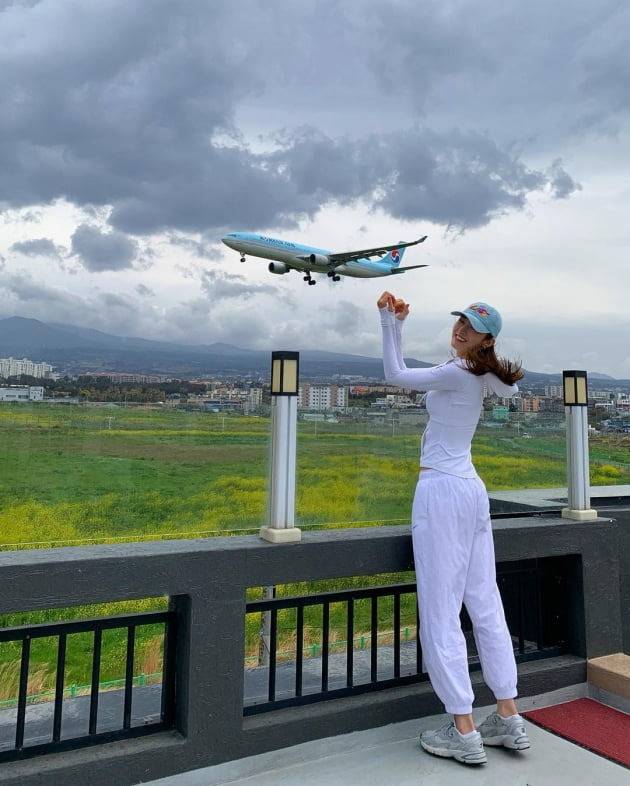 SNS에 짧게 남긴 “비 갠 오늘 아침. 항공대!!”라는 문구와 함께. 이 사진이 화제가 된 건 단순히 예쁜 코디 때문만은 아니었다.