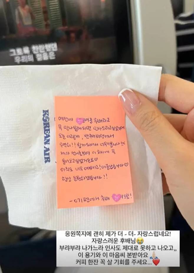 한눈에 봐도 정성스럽게 적힌 손글씨. 쪽지를 남긴 이는 서하얀과 같은 중학교를 나왔다는 현직 승무원 후배였다.