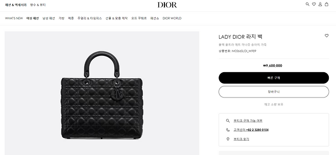 [디올 레이디 디올 라지 백(사진=디올 홈페이지 캡처)]