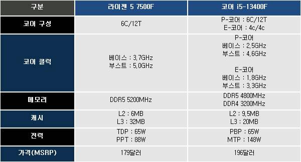 20만원 초반대 메인스트림 CPU, 라이젠 5 7500F vs 코어 i5-13400F