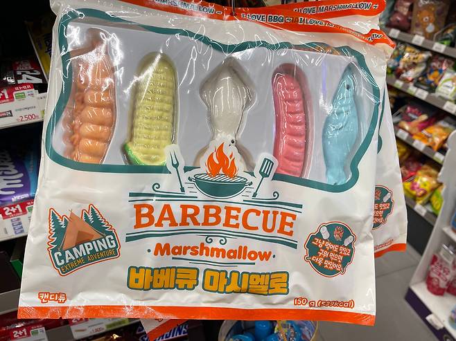 귀염뽀짝한 해산물 모양의 바비큐 마시멜로. 캠핑갈 때 챙기면 좋아요!