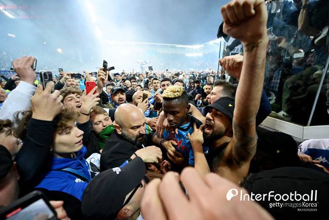 원정 경기였지만 수많은 나폴리 팬들이 경기장을 찾았다. 경기 종료 휘슬이 불리자 팬들은 일제히 그라운드로 뛰쳐나왔다. 팬들은 선수들과 뒤엉켜 함께 우승의 기쁨을 맛봤다. 김민재 역시 팬들에게 둘러싸였다. 한 팬은 김민재의 머리에 키스까지 할 정도로 강한 애정을 드러내기도 했다.