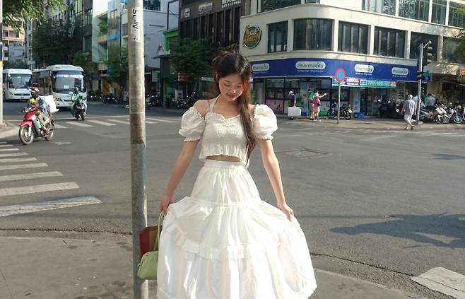 화이트 스커트 하나로 웨딩 스냅, 피크닉룩, 데이트룩 등