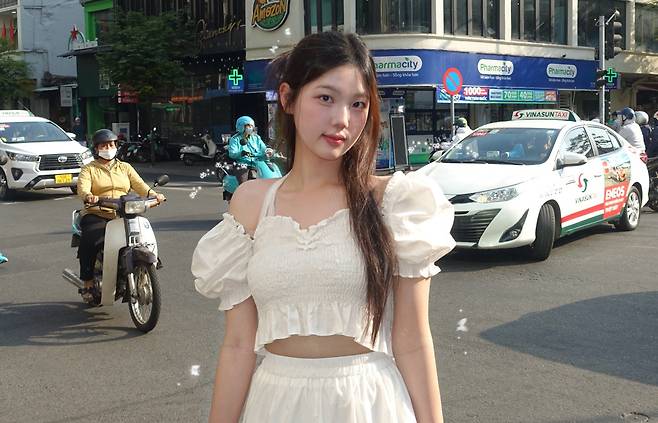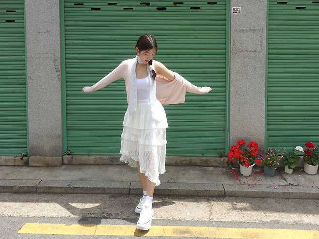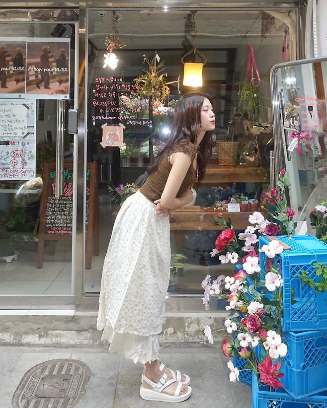 남자친구에게 꽃 선물 받기 좋은 룩이라는 표현이 딱 어울릴 정도로,
