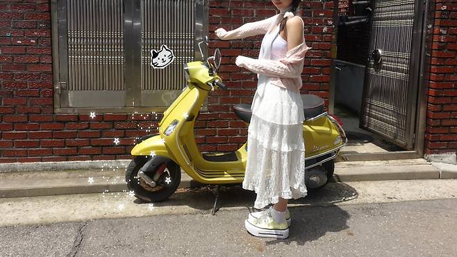 햇살 아래에서 더욱 화사하게 빛나는 스커트랍니다.