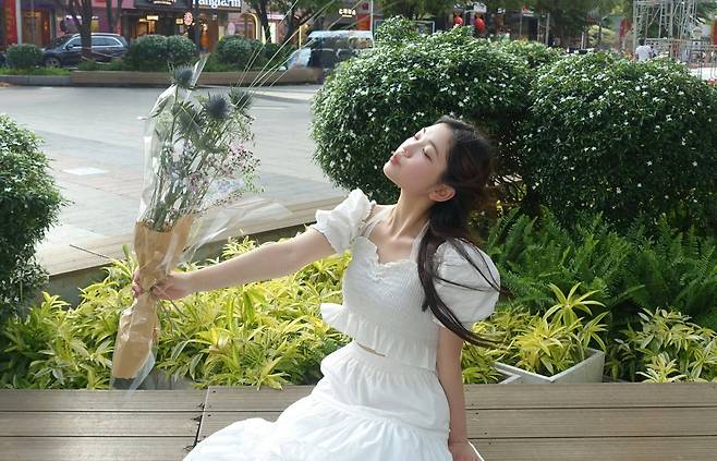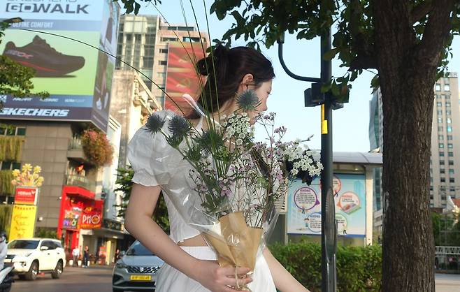 남자친구에게 꽃 선물 받기 좋은 룩이라는 표현이 딱 어울릴 정도로,