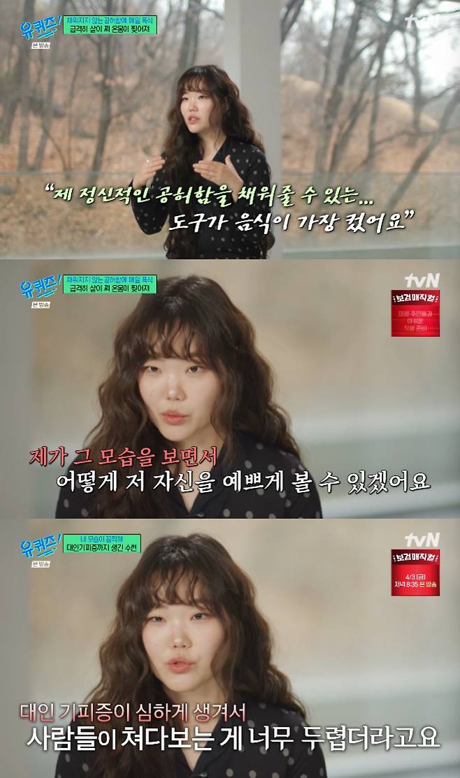 이어 "그 때 저의 정신적 공허함을 채워주는 게 음식이었다. 매일매일 폭식했다. 그러다보니 당연히 살이 급격하게 쪘고, 끔찍하리만큼 온몸이 다 텄다"고 했다.