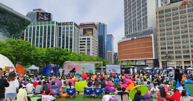 ‘리딩존’에서는 빈백과 캠핑 의자에 앉아 편안하게 독서를 즐길 수 있고, ‘공연존’에서는 음악과 영화, 버스킹 공연 등 문화예술 프로그램이 펼쳐집니다.