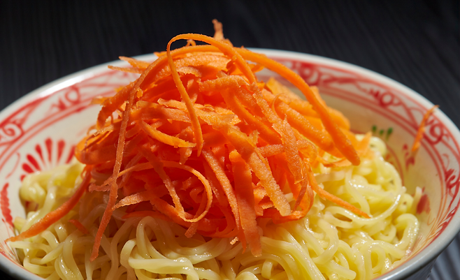 당근에 풍부한 베타카로틴은 강력한 항산화 작용으로 라면 섭취로 인한 산화 스트레스를 줄여준다. 라면을 자주 먹는 사람들에게 당근은 피부 건강을 개선하고 면역력을 강화하는 데 도움을 준다. 또한 당근의 식이섬유는 장 건강을 돕고 소화 기능을 개선하는 효과가 있다. 당근을 얇게 채 썰어 라면에 넣으면 식감이 좋아지고 영양가도 높아진다.