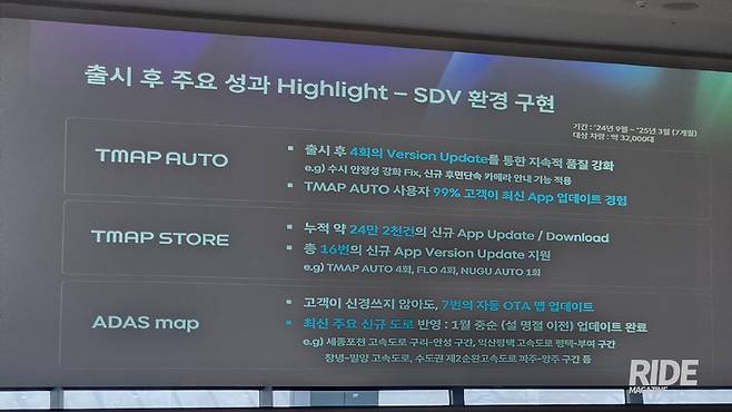 이렇게 뛰어난 사용 편의성을 보여줄 수 있는 건 티맵의 높은 사용자수에 있다. 2025년 2월 기준 등록 사용자수는 2,441만 명, 최대 월간 활성화 이용자 1,493만 명(2024년), 최대 일간 활성화 이용자 607만 명(2024년)이라는 국내 최대 유저풀을 기반으로 한 데이터를 쌓아오고 있기 때문이다. 여기에 사용자 피드백을 바탕으로 최적화 및 개선 작업을 통해 처음 사용하더라도 어려움 없이 필요한 기능을 사용할 수 있다.