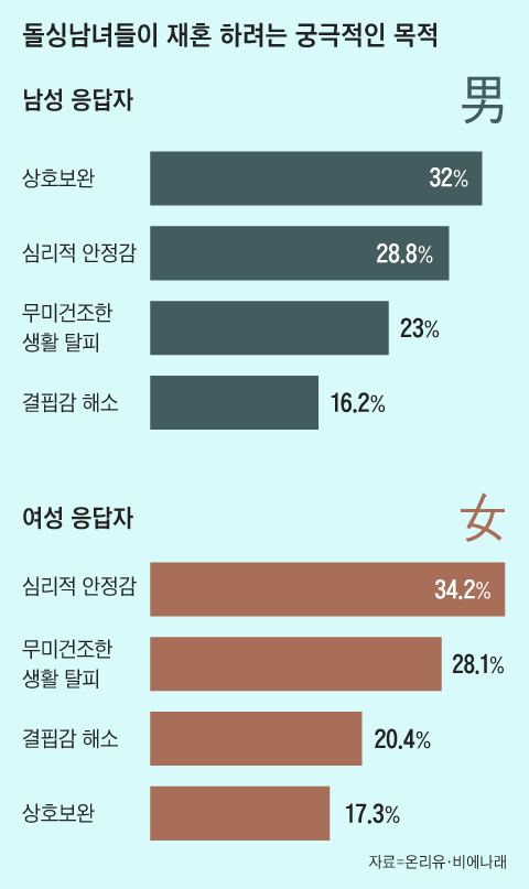 그렇다면 돌싱남녀들이 재혼을 하려는 궁극적인 목적은 무엇일까.