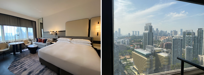 객실수는 각각 오차드윙 400여 개, 만다린윙 600여 개가 있다. 앞서 언급했듯 레스토랑이 대부분 만다린윙에 있다. 전망이 중요하다면 오차드윙을 추천한다. 싱가포르 야경의 상징 마리나베이가 멀찌감치 보인다.